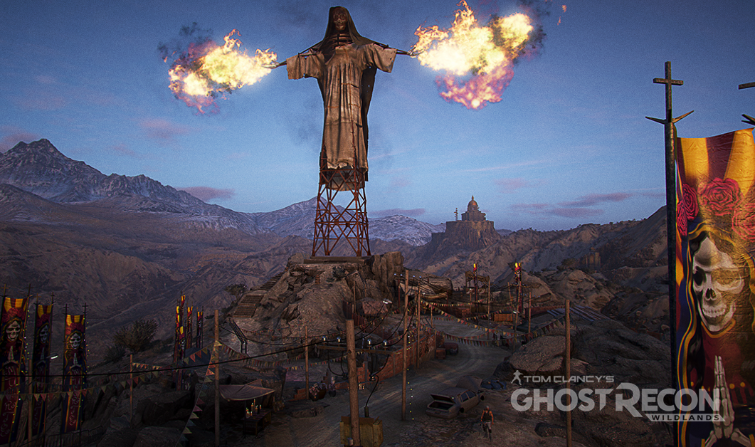 Наконец, еще одна кнопка, которую точно не надо нажимать, находится в провинции Малка, рядом с одной из самых высоких статуй в Wildlands, увековечившей символ картеля, возглавляемого Мечтателем. Ваш "призрак" не испепелится, чего не скажешь о Святой Смерти.