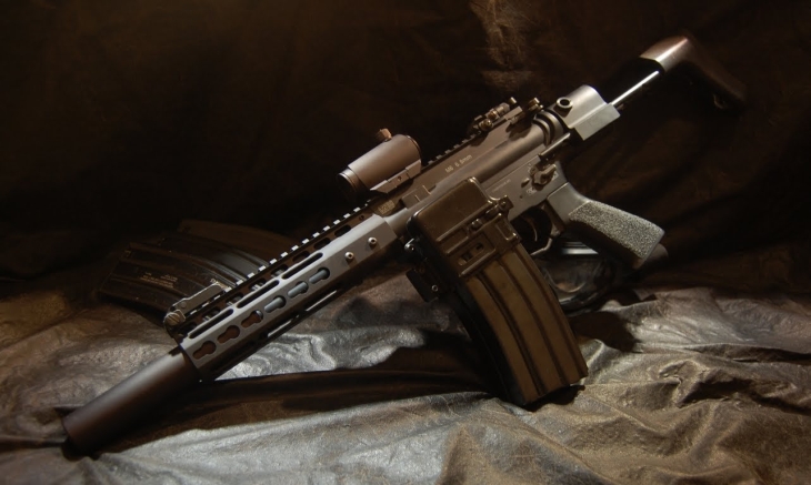 Honey Badger - это американский автомат со встроенным глушителем. Соответственно, это оружие для диверсий и облав. Идеально подходит для ведения боевых действий в стелс-режиме. По сути Медоед является укороченным вариантом штурмовой винтовки AR-15.