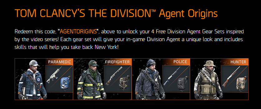 Для тех кто всё таки решился на покупку The Division , есть приятный сюрприз - 4 набора снаряжения .
