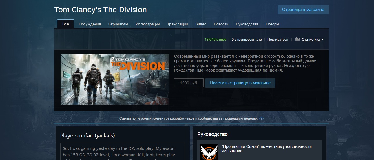Дивизия, которая не смогла. Заходим на страницу игры в стим, видим вот это: