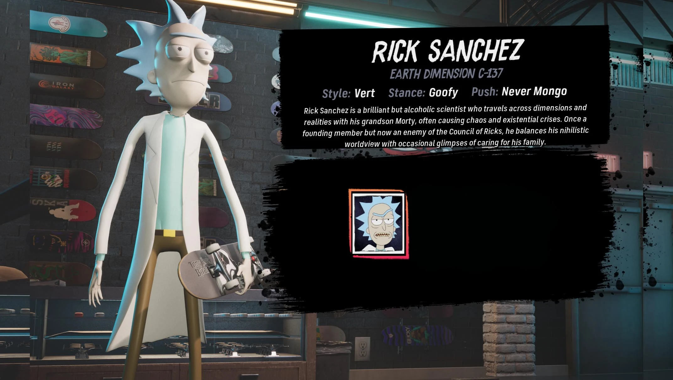 Теперь вы можете играть за Рика Санчеса из популярного мультсериала "Рик и Морти". Модификация заменяет модель Тони Хоука на Рика, которая выполнена в мультяшном стиле.
