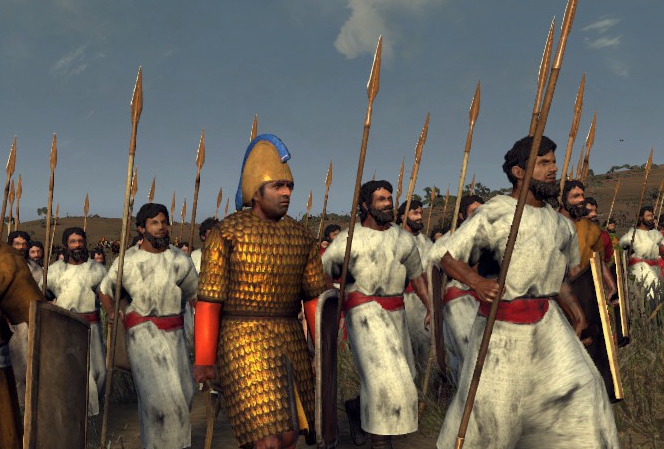 Основной военной силой всех без исключения фракций является пехота, причем тяжелой, элитной, которую составляла знать, способная купить себе бронзовые доспехи, немного. Лучники, копейщики, бронзовые топоры и плетеные щиты, обтянутые буйволовой кожей, или даже сколоченные из досок - вот с таким оружием идут в бой ваши войска. Заметим, что отряды здесь очень крупные, по 240 воинов в одном строю.
