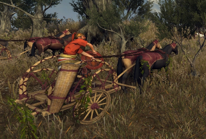 Ну и конечно же, это золотой век боевых колесниц, которые применяют все без исключения армии, хотя и упряжь, и устройство их у каждой нации на свой манер.