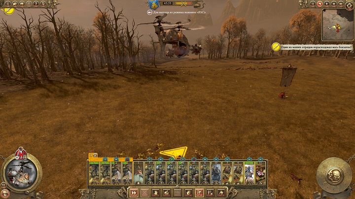 38 ход- с автожирами странная штука. Их стрельба выглядит неэффективно, а вот работа лопастями на земле- очень круто. Кровь, кишки, руки-ноги во все стороны! Но по итогам- стрельба косит орков десятками, а рукопашная атака убивает единицы. Несправедливо.
