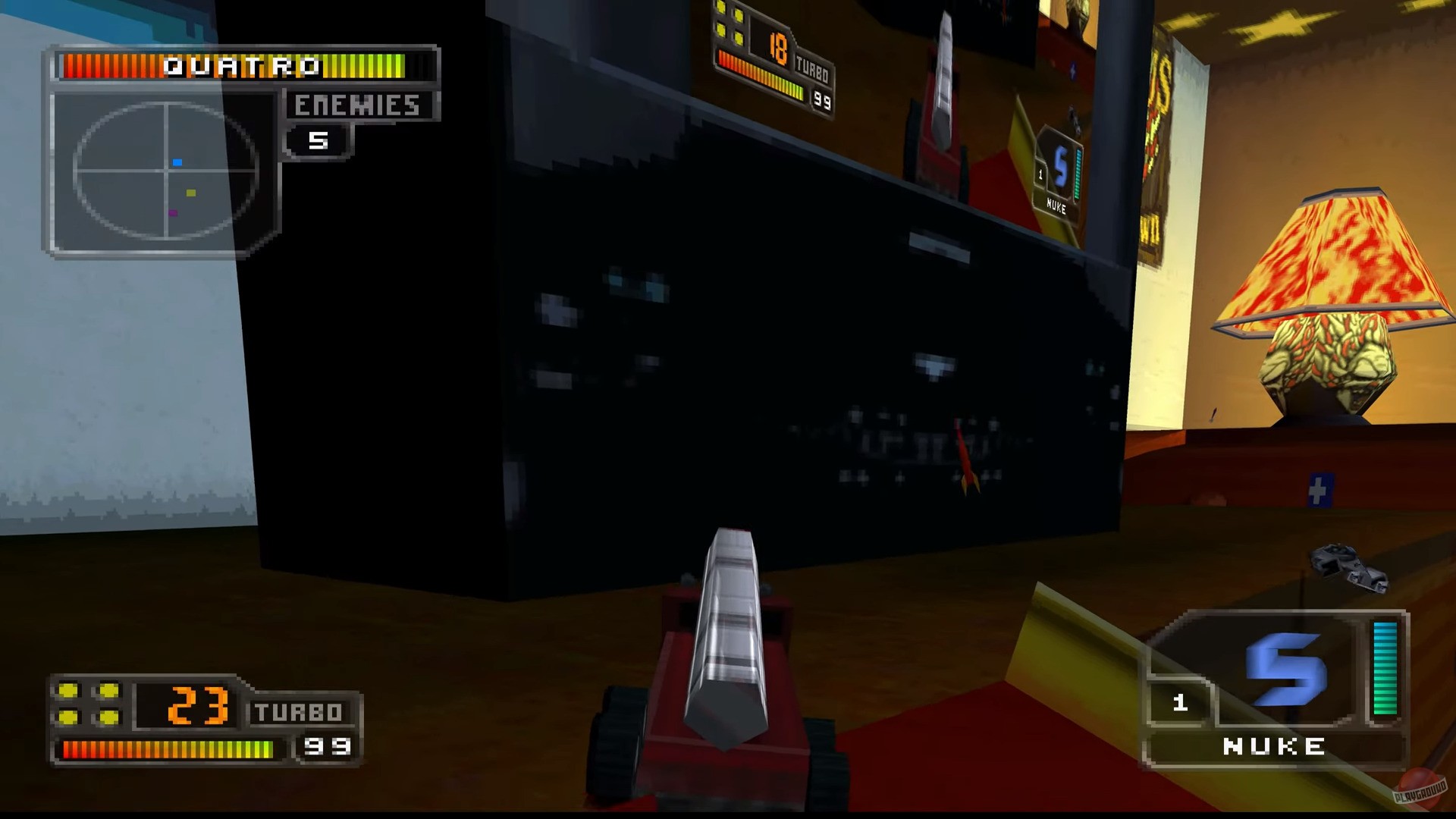 Что касается самой игры, то 989 Studios явно старались исправить проблемы третьей части. Физика стала более вменяемой — машины перестали летать как воздушные шарики. Уровни сделали больше, добавили кучу нового оружия. Правда, управление всё равно осталось довольно дёрганым, да и графика хоть и стала лучше, но до конкурентов вроде Vigilante 8 не дотягивала. Зато теперь можно было рубиться вчетвером через Multitap — для 1999 года это было неплохо.