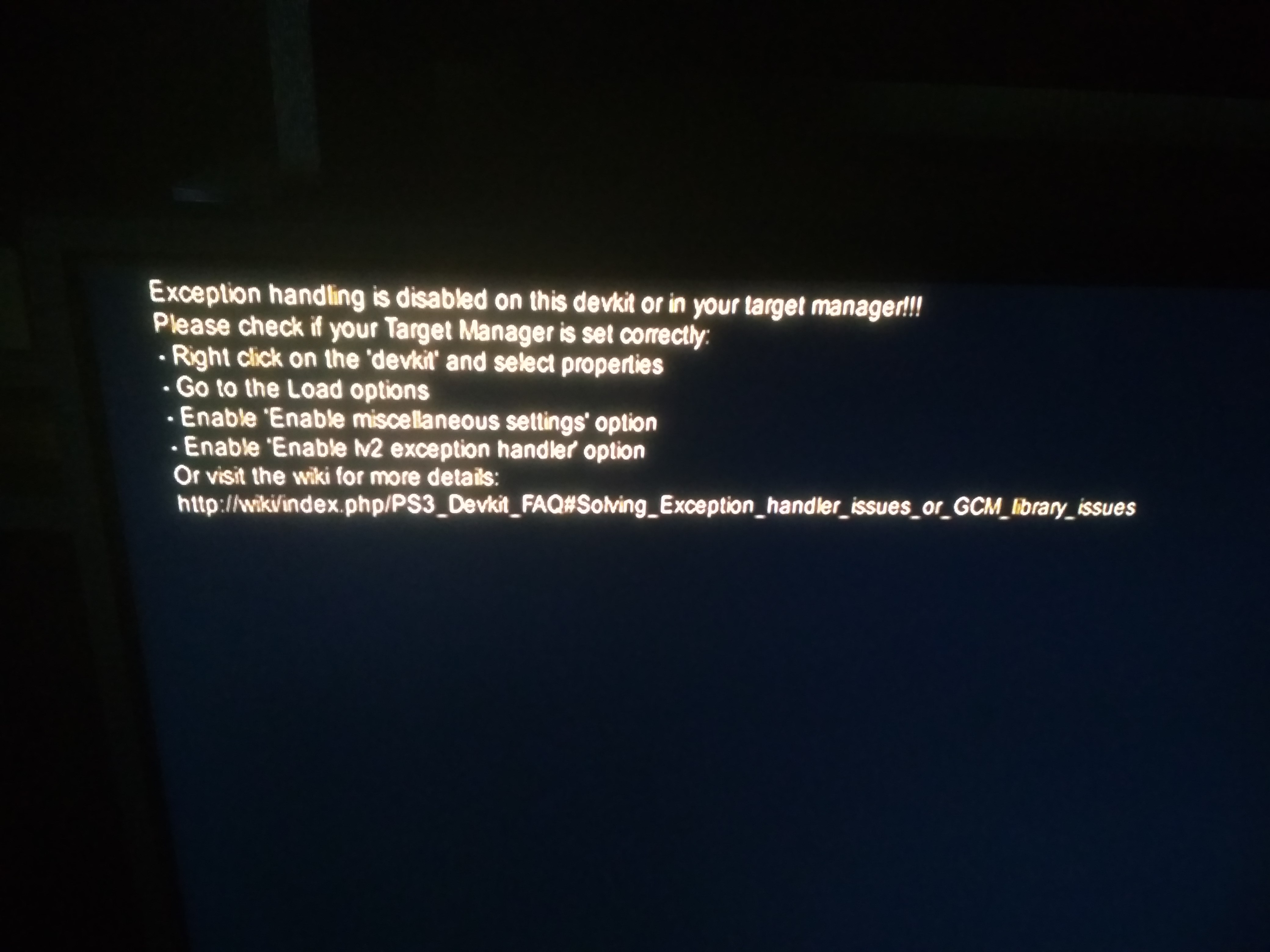 Не запускается версия PS3 Beta 2011-2012 - Ошибка "Right click on the dev kit. Enable lv2 exception handler option"