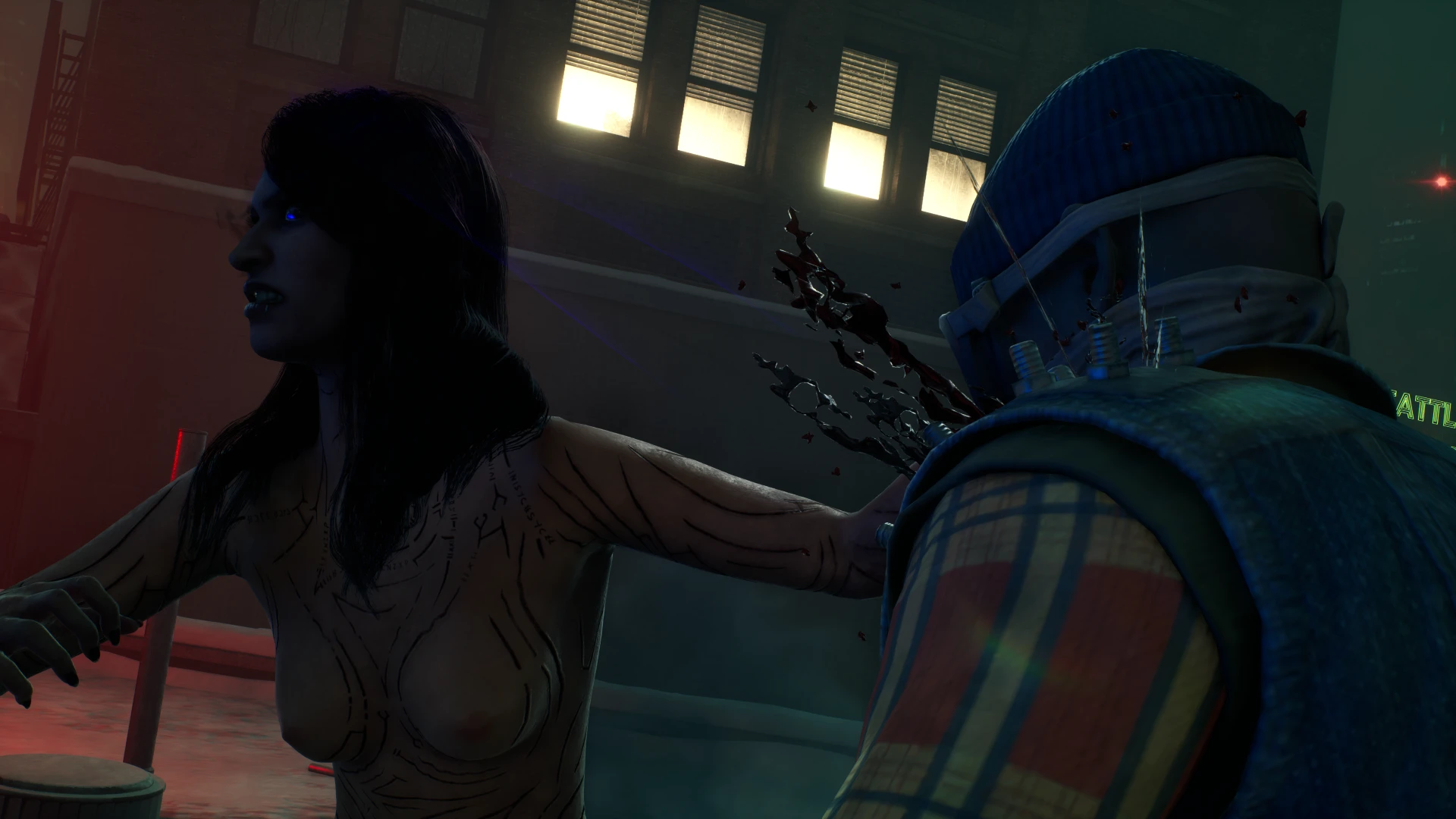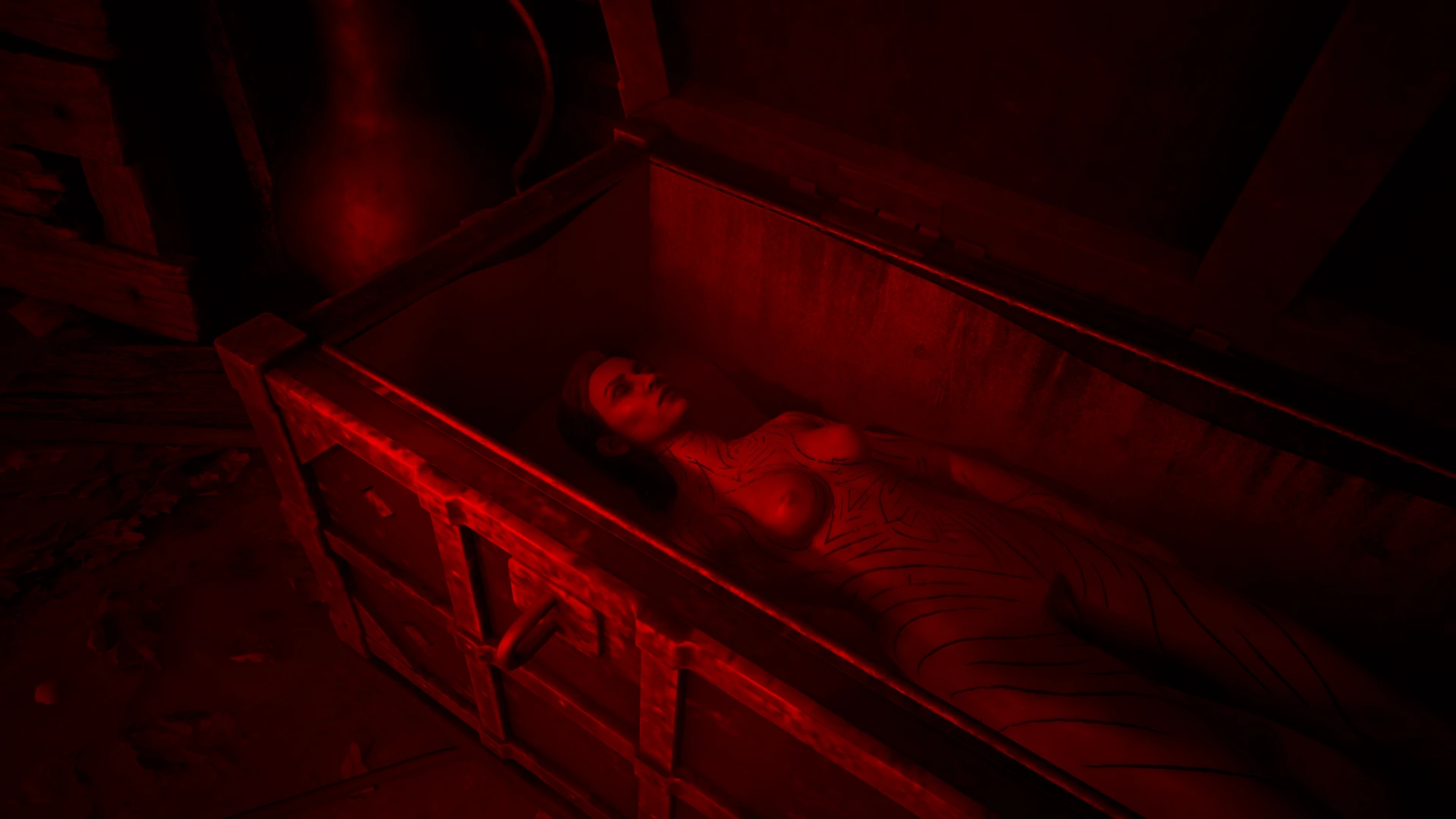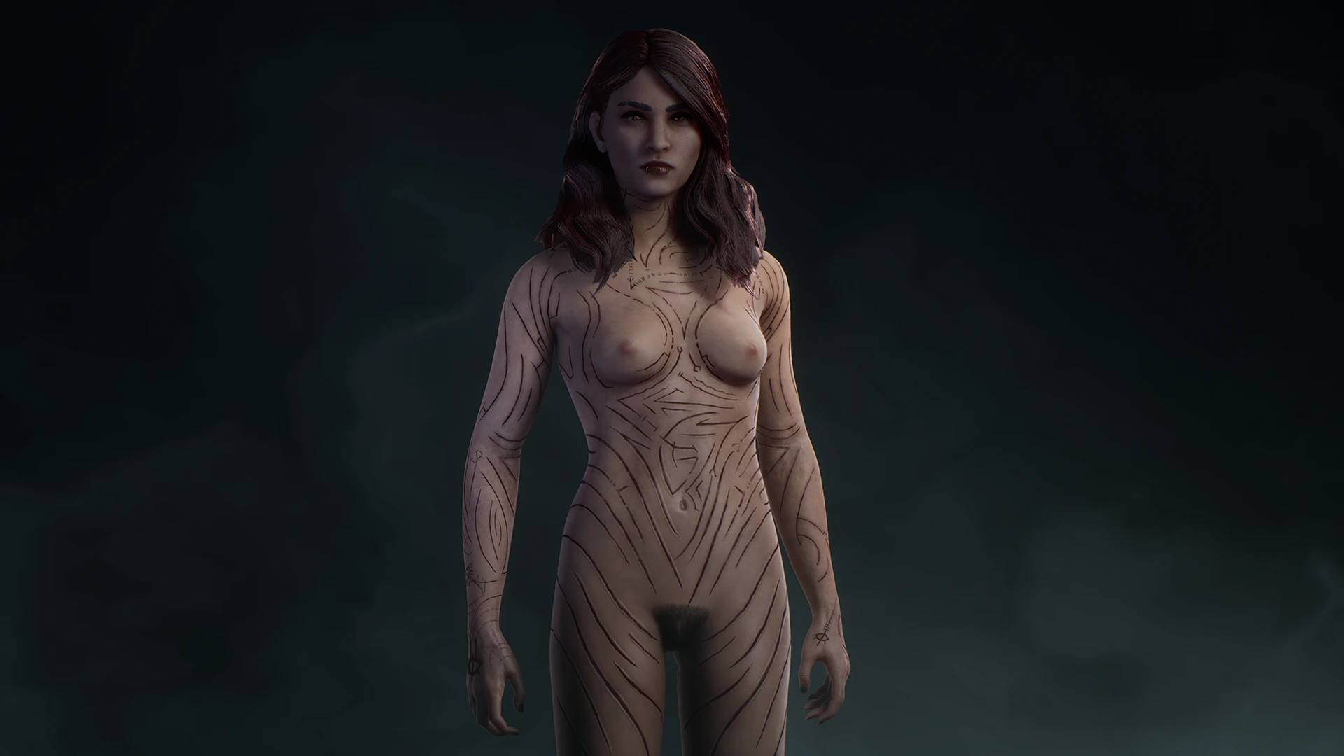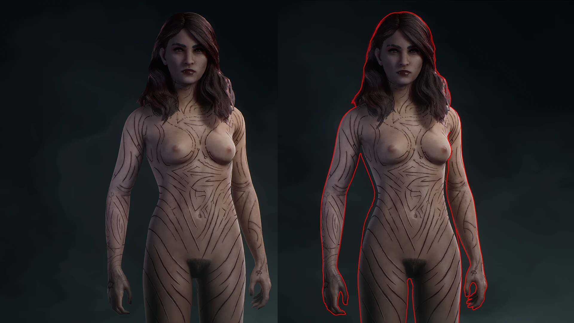 Теперь вы можете полностью снять обременяющее вампирские наряды и играть за совершенно голую Файр. Модификация удаляет верхнюю одежды и добавляет текстуры обнаженного тела, включая некоторые анатомические детали.