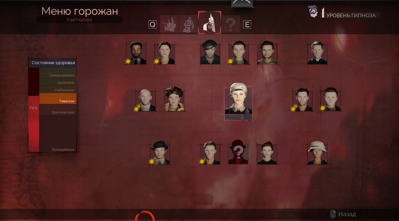 Если женщина в шляпе - то она на кладбище, а мужик в середине будет по сюжету, а левый в шляпе - он водном из домов в начале Уайтчаппела, если идти от больницы.