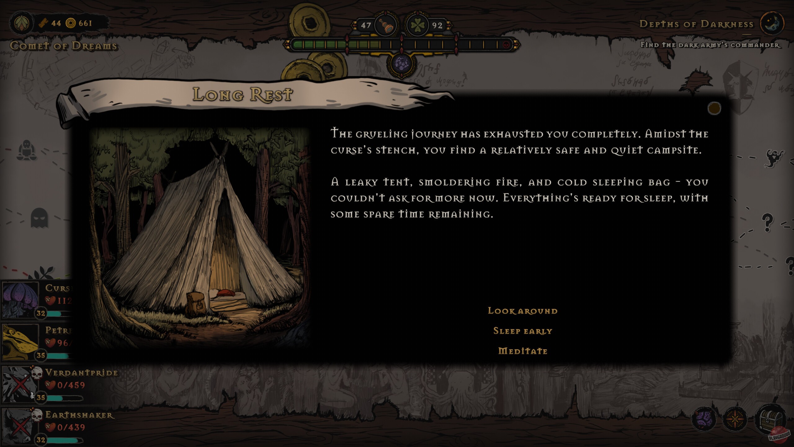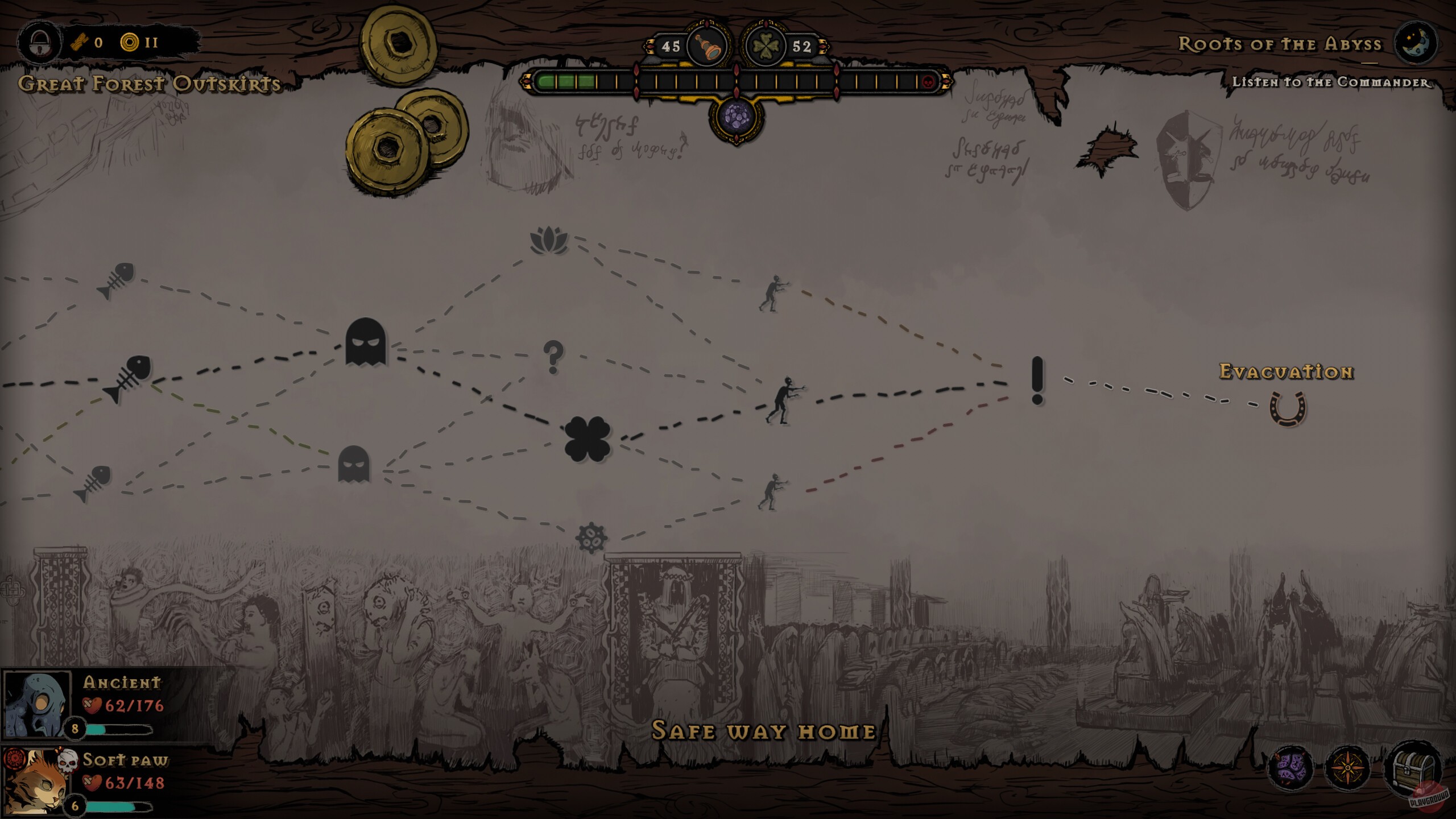 Между походами в подземелья можно заниматься развитием поселения — улучшать здания, открывать новые возможности для борьбы с Бездной. Вся эта система завязана на материалы, которые добываешь в экспедициях, так что риск и награда идут рука об руку.