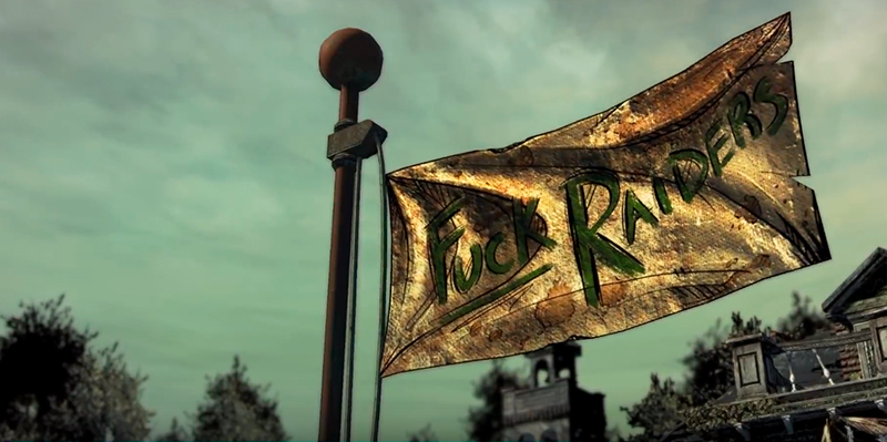 38. Итак, прошло ДВЕ недели. Все трудились не покладая рук, и оборона лагеря выстроена на славу! От головорезов Лилли будем защищаться следующим: новым флагом (повешенным вместо майки), мотивирующими граффити, плакатами «Ипать рейдеров!» и зомбячими головами на шестах: для пущего устрашения. Мощнейшая оборона.