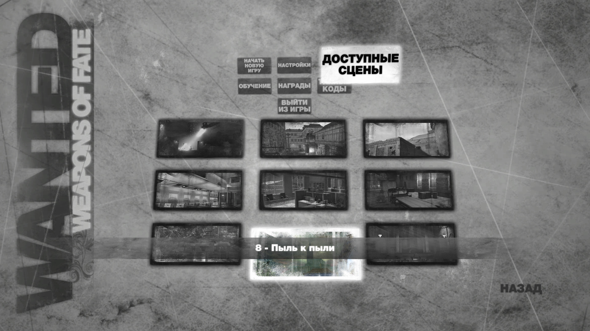 Wanted - Weapons of Fate "Сохранение - игра пройдена на максимальной сложности, всё открыто" Hoper2696 12 октября Особенности: Игра полностью пройдена Уровень сложности - Киллер Доступны все уровни для переигровки Найдены все секреты Открыты все костюмы Путь: Содержимое архива распаковать по пути - ...C:\Users\Пользователь\AppData\Local\wanted...