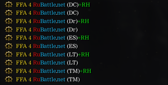 Представляю вашему вниманию список официальных турнирных карт для боёв в режиме FFA (Free For All). Во избежании союзов ники игроков скрыты на данных картах!