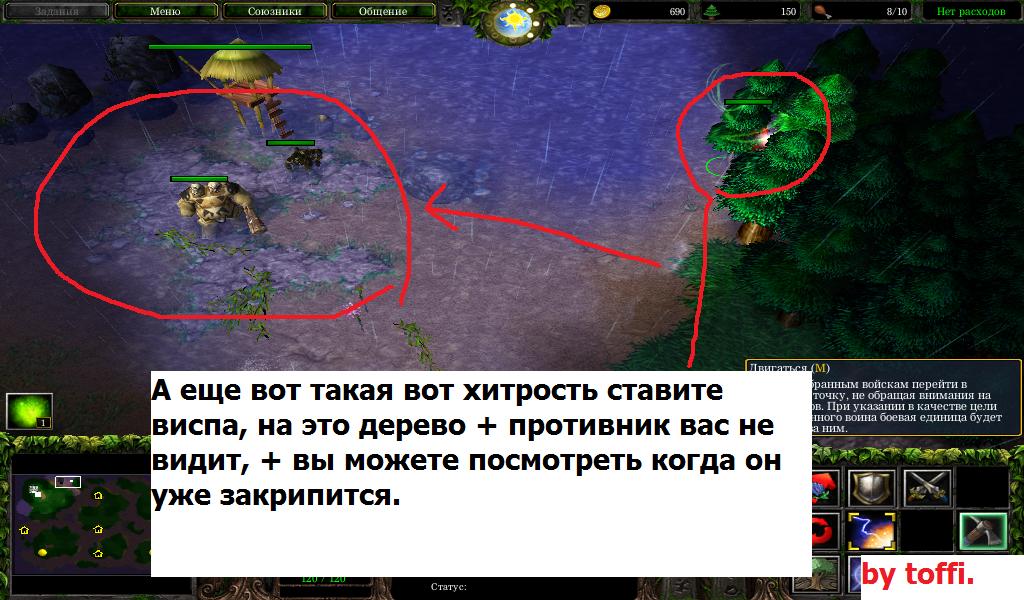 на теренасе висп может нанять гоблина шредера и закрипить точку, подхиливая виспом шредера...
