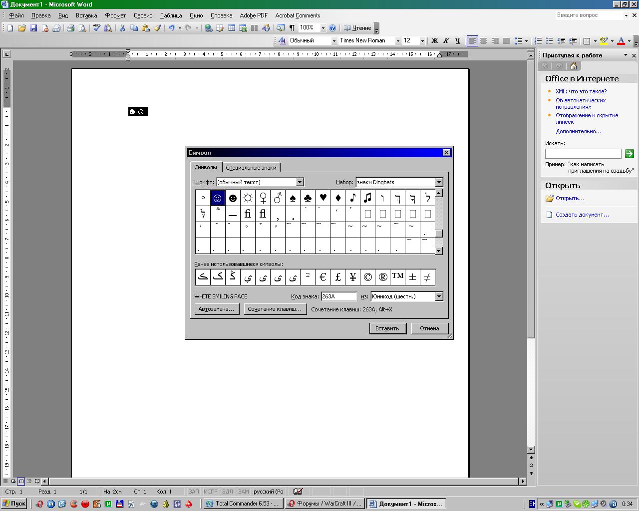 Видимо понимаю о чем идет речь, код "смайлика" нужно брать из Word.