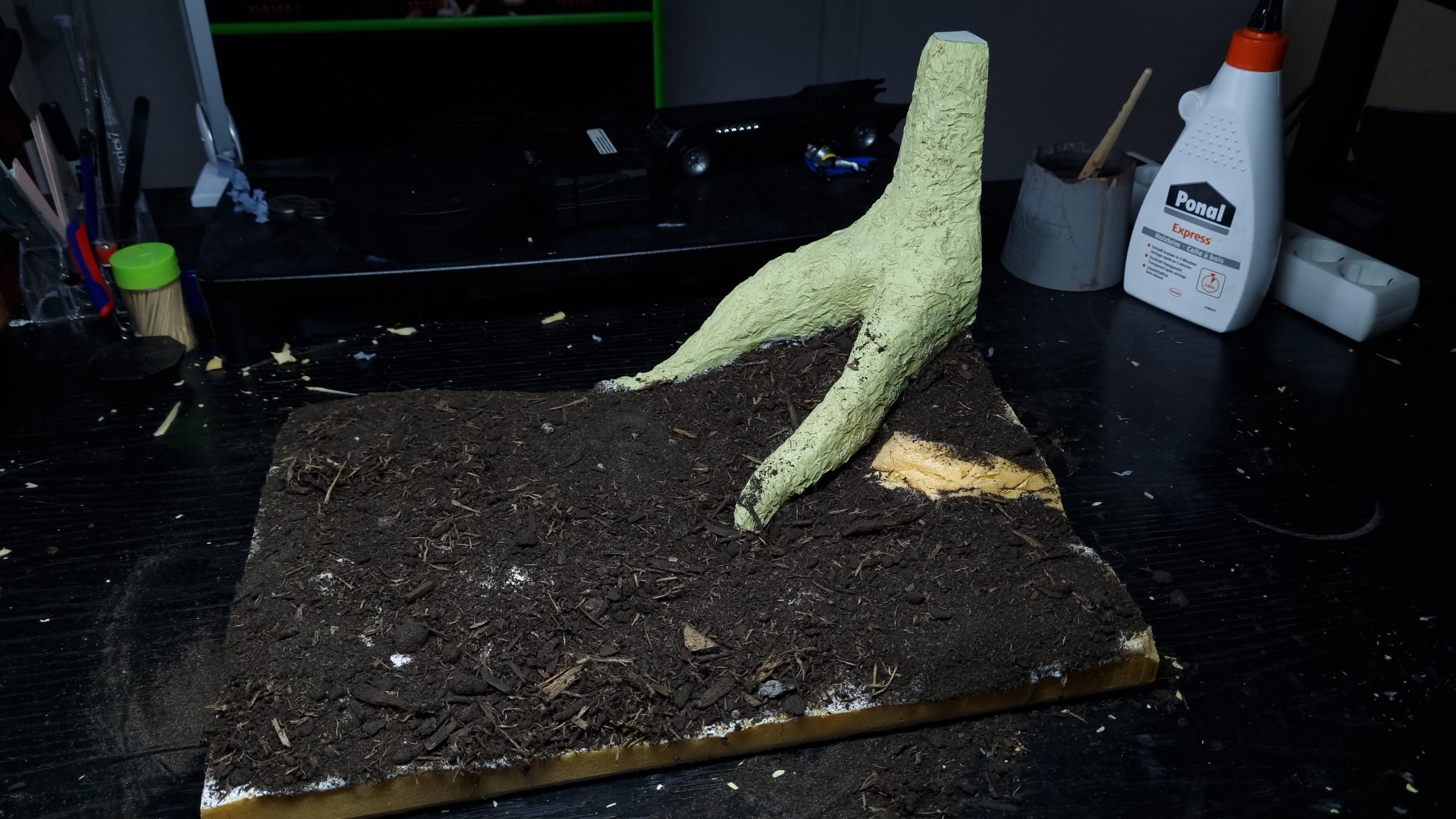 Как и в предедущих диорамах, авторы использовали в своей работе все те же материалы: софт по 3D моделированию (Fusion 360 и Blender), эпоксидную смолу, термоклей, бумагу, пластик и прочих доступных под рукой материалов. Работа над миниатюрой заняла 4 месяца.
