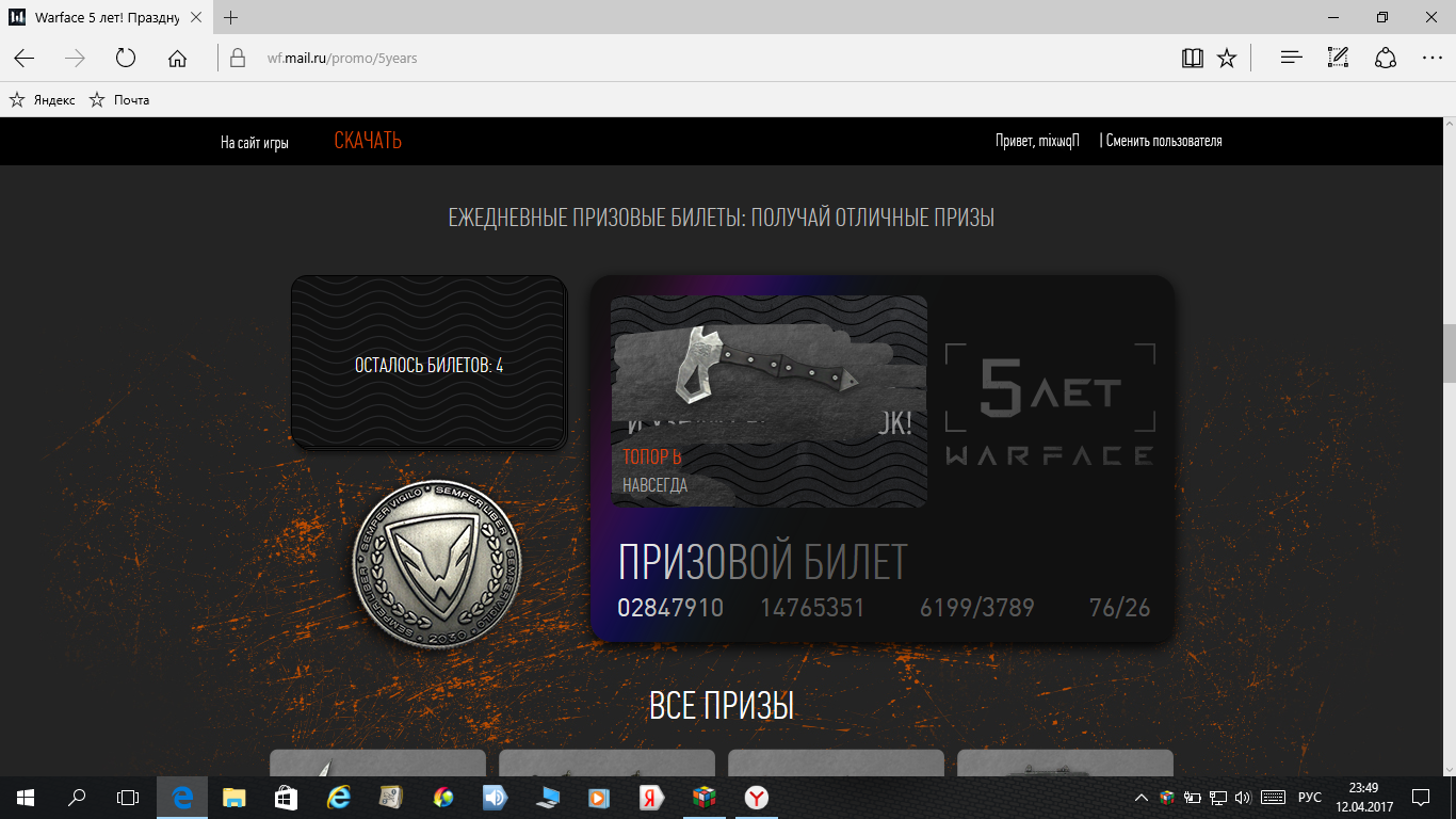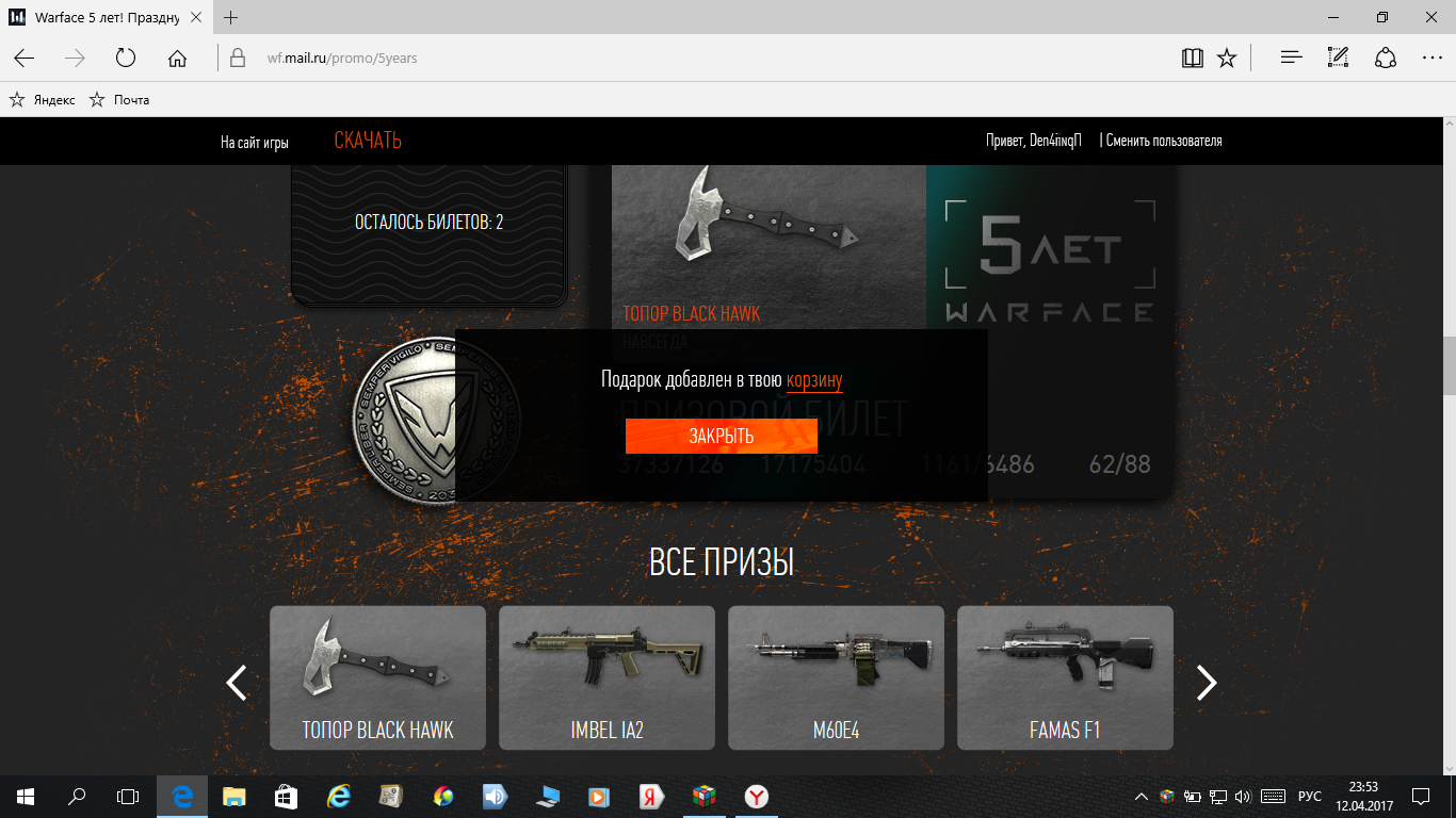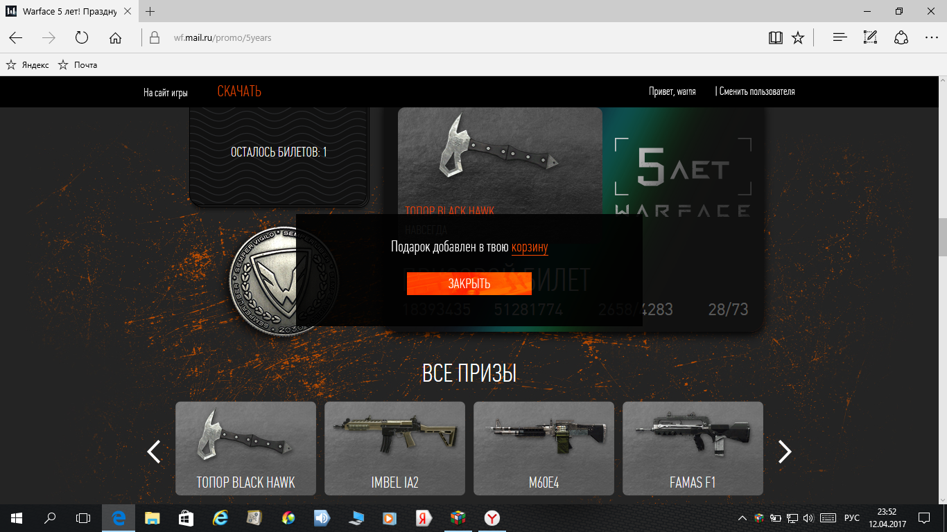 Всем привет! Крутил коробки с трех логинов и во второй день на всех выпал топор black hawk! Очень рад этому! У кого что выпало, делимся))