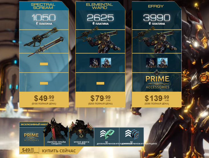 Начиная с 18 Декабря, следующие предметы и их соответствующие реликвии будут добавлены в Хранилище. Эти предметы больше не будут доступны в игре(Банши Прайм,Гелиос Прайм,Юфона Прайм)