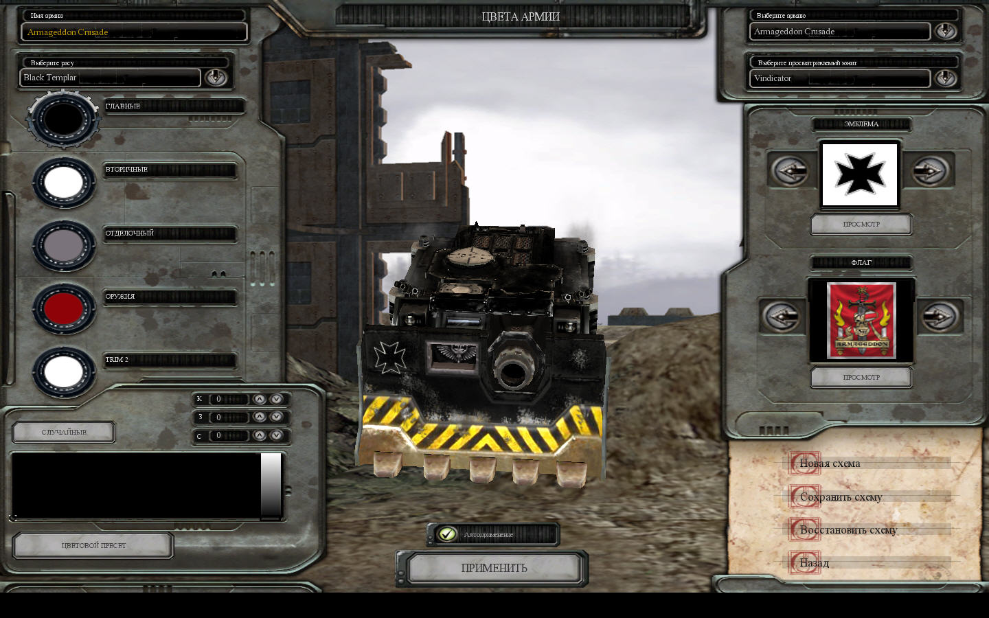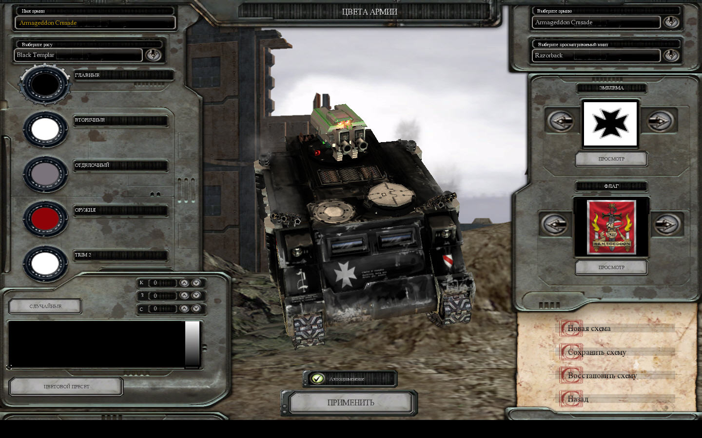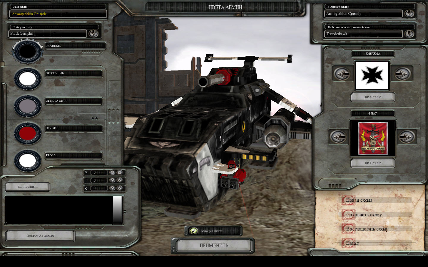 Версия, считайте что бета. По этой причине - язык только английский. Как ставить: 1. Установить Advanced Skirmish AI 3.2 2. Распаковать архив с модом в каталог с игрой. (Только Соулсторм. На Дарк Крусейд не запустится) Как патчить: Ссылка на патч и инструкция - на форуме мода. Основное что исправляет патч - восстанавливает отображение "душ" при игре за Д.Э. Ну и по мелочи немного... to: Иван Крутой Cкрины делать не умею. Зато ИИ программировать умею. В следующей версии - кампанию обновлю слегка. Можно будет наказать Кровавых Воронов за ересь. Подробности на форуме. Кстати, men - это во множественном числе существительное. to: ZeNoN215 А ты что ожидал увидеть? Встречный вопрос: Слышал что нибудь о настольной игре Вархаммер 40К и о кодексах? О кодексах Черных Храмовников, Темных Ангелов, Кровавых Ангелов, Космических Волков? Расстрою - они все космодесант, только другой, а не обрезанный. Мод сделан в соответствии с кодексом Ч.Х. + балансирован относительно Cоулсторма. Анбэка не ждите.
