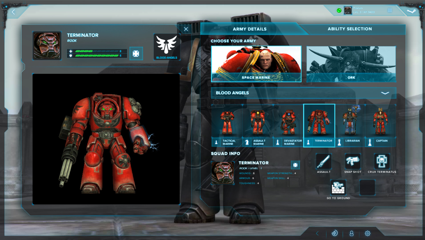 Кроме того, можно использовать и специальные командирские способности. Так, вы можете сбросить на противников дымовую гранату в попытке их дезориентировать; подарить своему воину персональный щит, защищающий от одной атаки или вылечить его. Способности дают возможность почувствовать себя чуть ли не самим Императором, следящим за всеми своими солдатами из Золотого трона.