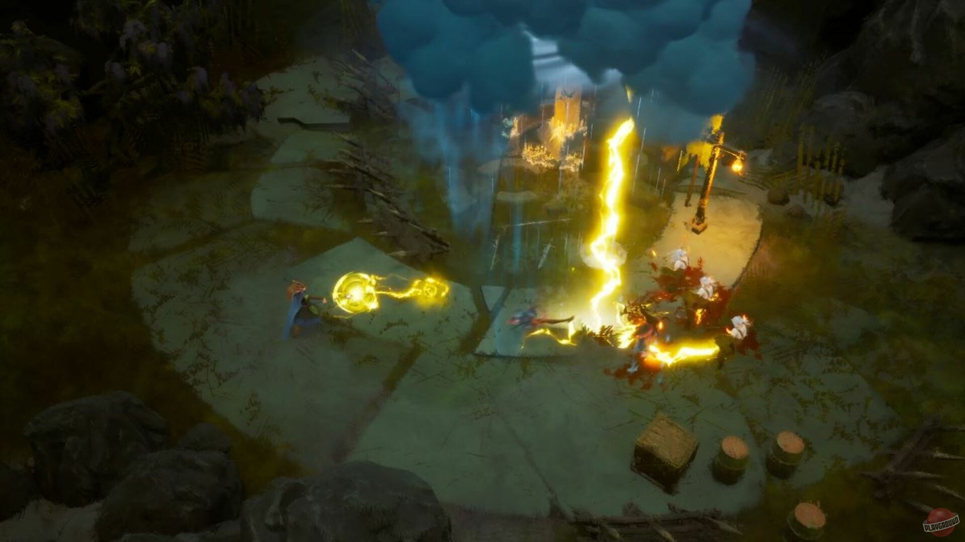 А самое интересное в игре — это как разные стихии влияют друг на друга. Вода гасит огонь, молнии лучше бьют по мокрой земле, а смола наоборот делает огонь ещё опаснее. И вот такие простые правила открывают кучу возможностей в бою.