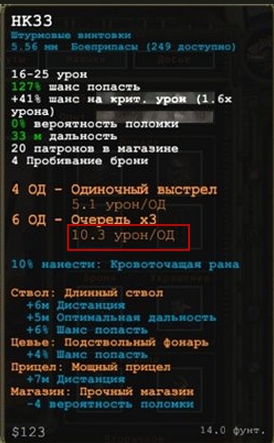 Тогда что значит самый верхний урон? на этом оружии допустим урон 16-25 , я думал что в этом диапазоне и будет урон за выстрел , а выстрел в свою очередь требует 6 ОД например .