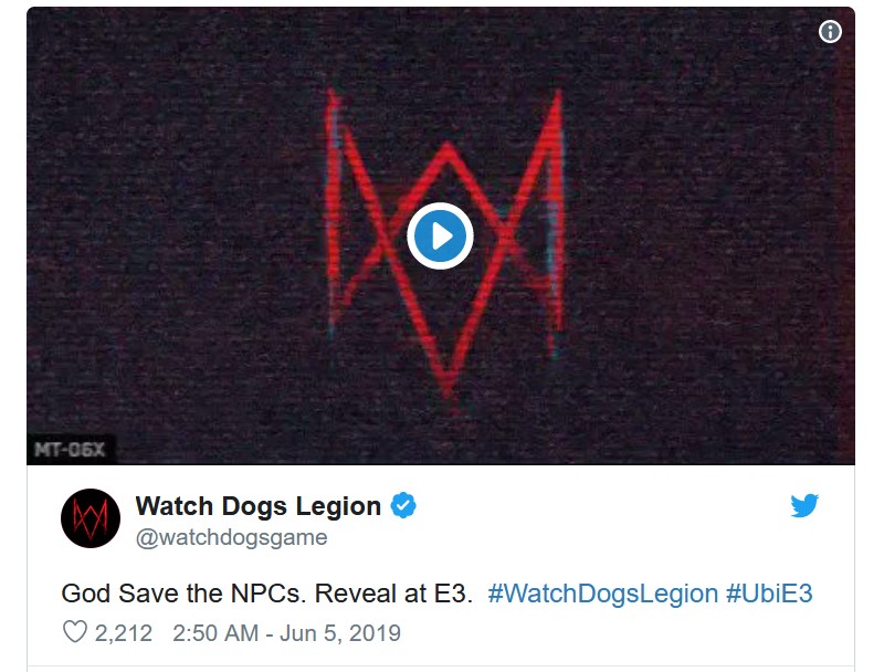 Компания Ubisoft официально анонсировала третью игру в серии Watch Dogs с подзаголовком Legion, опубликовав на странице игры в Twitter небольшой тизер.