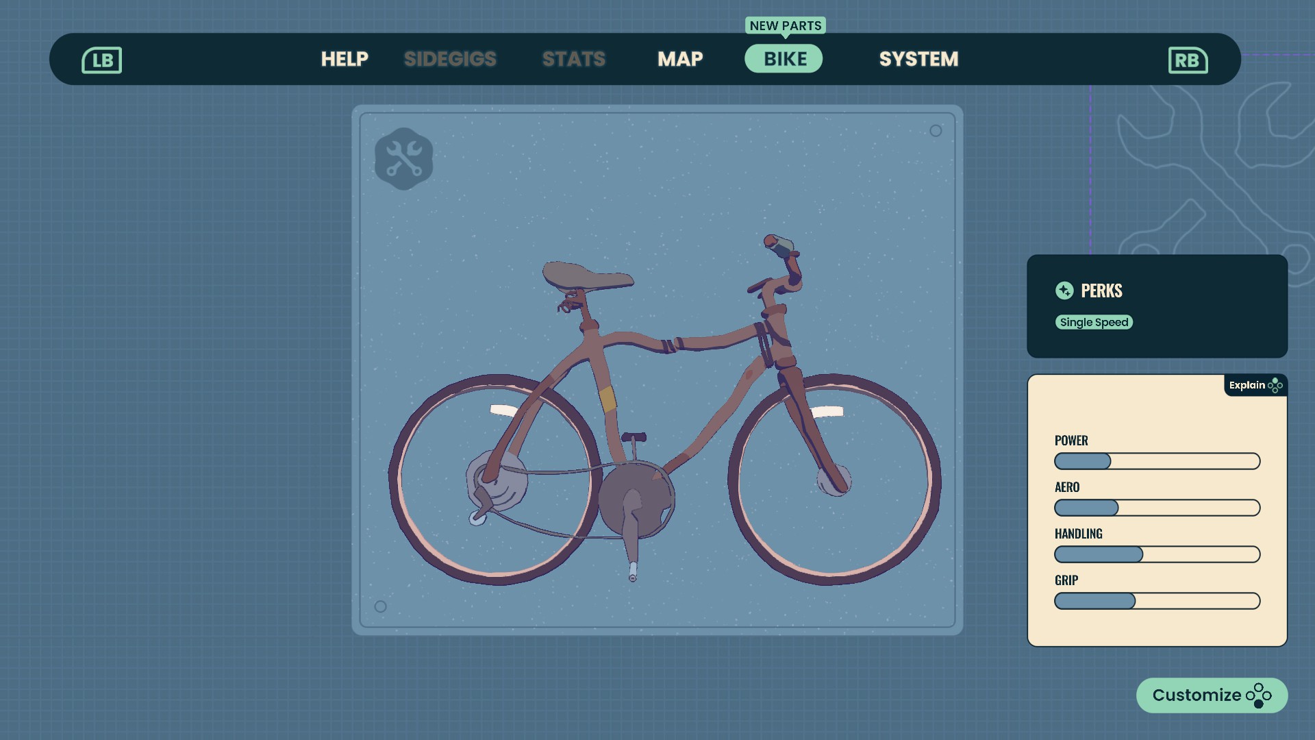 Судя по доступным материалам, разработчики из Messhof уделяют особое внимание кастомизации. В демоверсии сразу заметно, что новые детали не просто меняют внешний вид велосипеда, но и влияют на его функциональные характеристики. Например, определённые запчасти улучшают сцепление с различными поверхностями, такими как грязь или песок, а другие повышают аэродинамические свойства, делая управление более точным. Всё это создаёт ощущение, что настройка велосипеда будет играть важную роль, позволяя подстроиться под разные трассы и погодные условия.