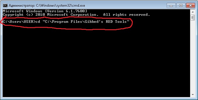 5) Переходим в папку с установленной программой (в моем случае прога установленна в C:/Program Files/Gibbed's RED Tools поэтому у меня команда выглядит так: