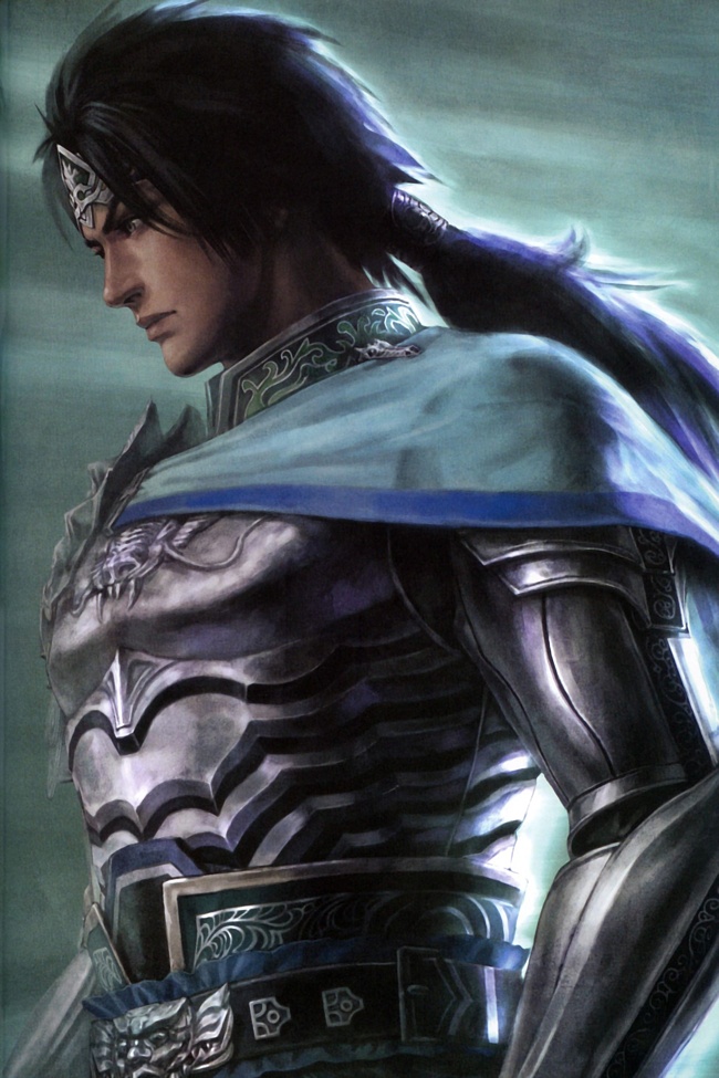 Снаряжение: Одет в темный чешуйчатый доспехи, такие же поножи и сапоги. Носит длинный черно-белый плащ. На боках висят парные клинки.