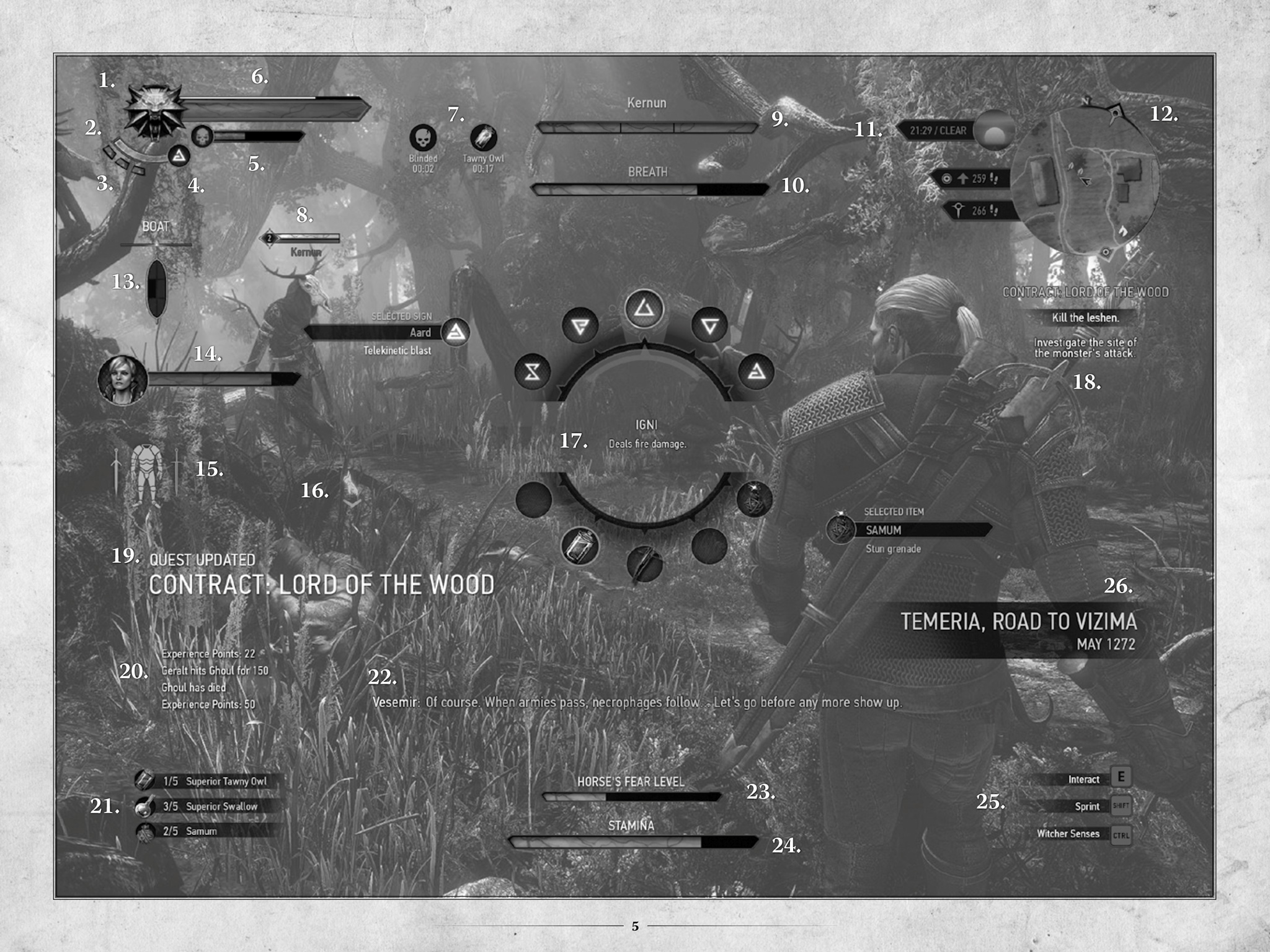 В сеть попало краткое руководство PC-версии The Witcher 3. И, среди прочей общей информации, тут можно найти описание всех деталей интерфейса.