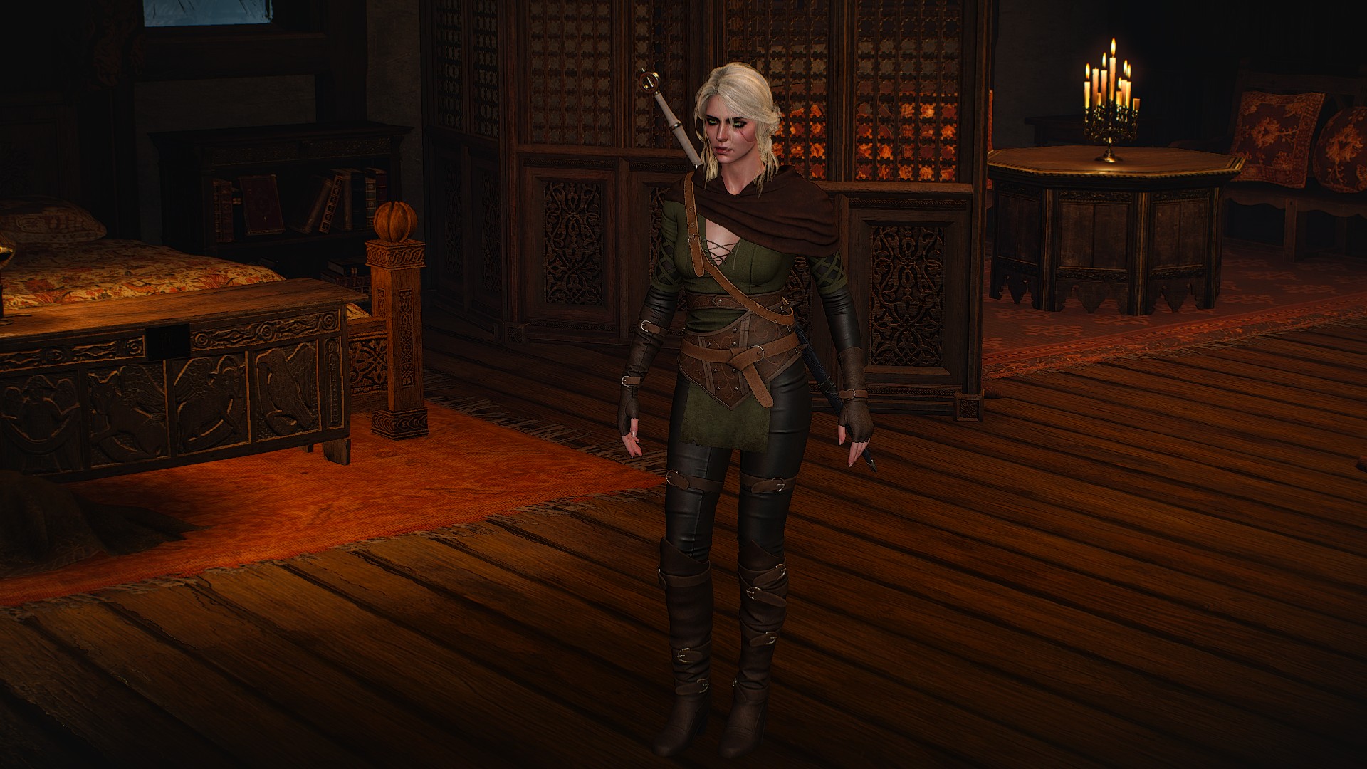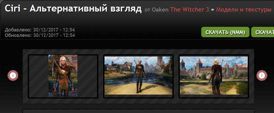 Раз уж мод выложен дважды, повторю здесь: В целом мод неплох, сделан с нуля, очень адекватен, вполне вписывается в мир и хорошо смотрится. Пожалуй лучший наряд Цири на данный момент. Короче 9 из 10 баллов. Но ... Тесты показали, что есть таки пара неприятных нюансов: 1. То короткое время, что Цири носит медальон Вессемира, означенный медальон наполовину тонет в складках капюшона, как будто в жиже. 2. Нет утеплённой версии. (Надеюсь пока). 3.( Правда это проблема не мода, а игры в целом): создатели включили пару видеовставок, где попросту нет места каким-либо альтернативным образам и это создаёт весьма сильный диссонанс.