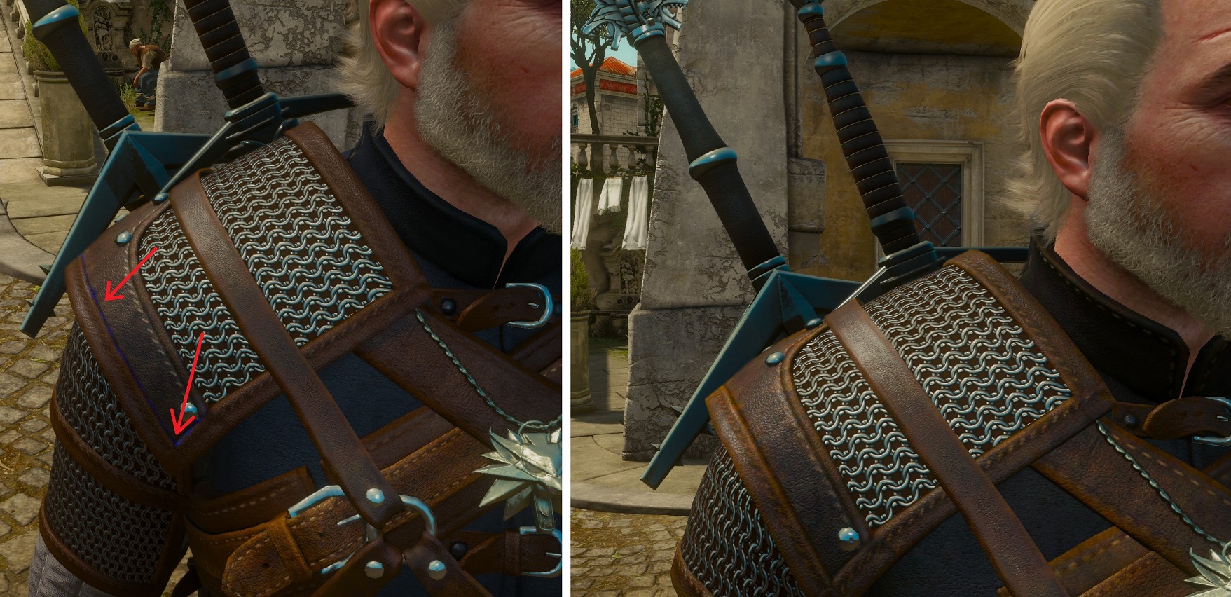 помимо всего там еще есть изменение, исправили мечи мастерские, тоже не торчат из ножен как и арондит и множество других вещей
