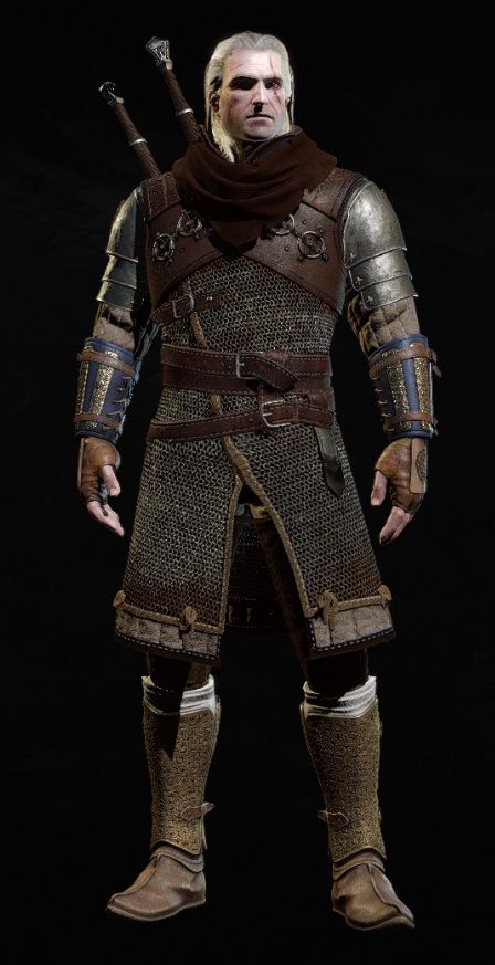 Суть: когда одеваешь на Геральта полный сет, то шарф из желтоватого цвета превращается в темно-коричневый, может даже темно-бурый, а нижняя часть (падол) из зелёного в белый.