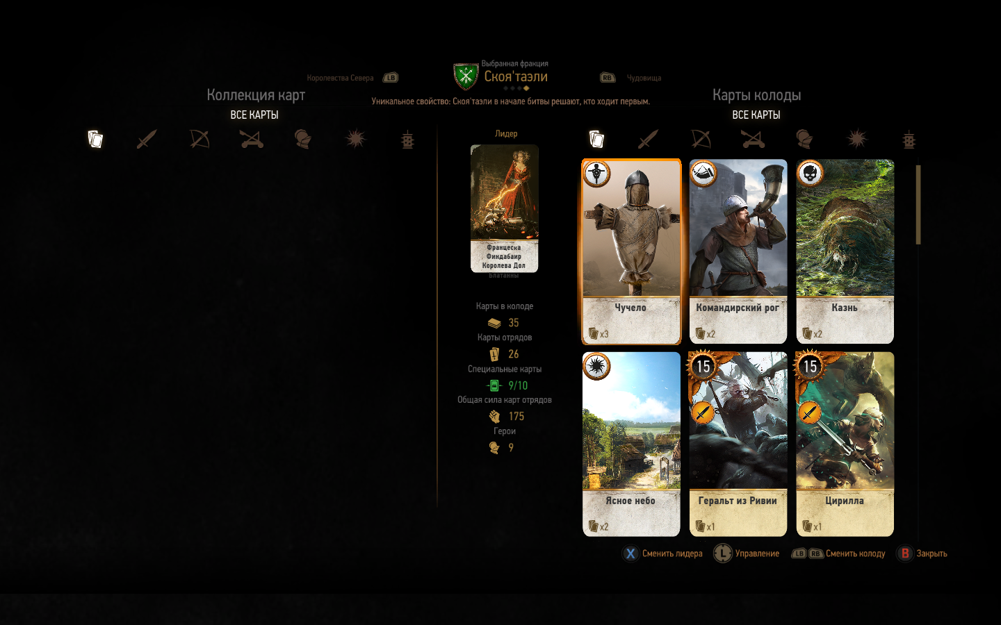 В продолжении темы гвинта в "Каменных сердцах". У меня точно такая же проблема, как и у pointbuster. Переустанавливал дополнение три раза, не помогает. Не отражаются карты в левой части гвинта, лидеров не поменять стоит замок и вот такая надпись, почему то по английски: sir slama with a super long conveluted name dasdasdasd. ???? Заметил вот что, пока не купишь карту лидера из колоды дополнения "Каменные сердца", при нажатии на колоду карт гвинт, слева колекция карт отображается, а вот если купишь карту у торговца ( под ней имеется надпись failed to card defenition), то коллекция карт слева исчезает напрочь, и начинаются затупы. Ума не приложу что делать, звонил в Origin (приобретал игру через них) он разводят руками говорят мы только распространители обращайтес в техподдержку разрабов. В тех поддержке cd project все только на английском и польском. Может, кто решил проблему, помогите.