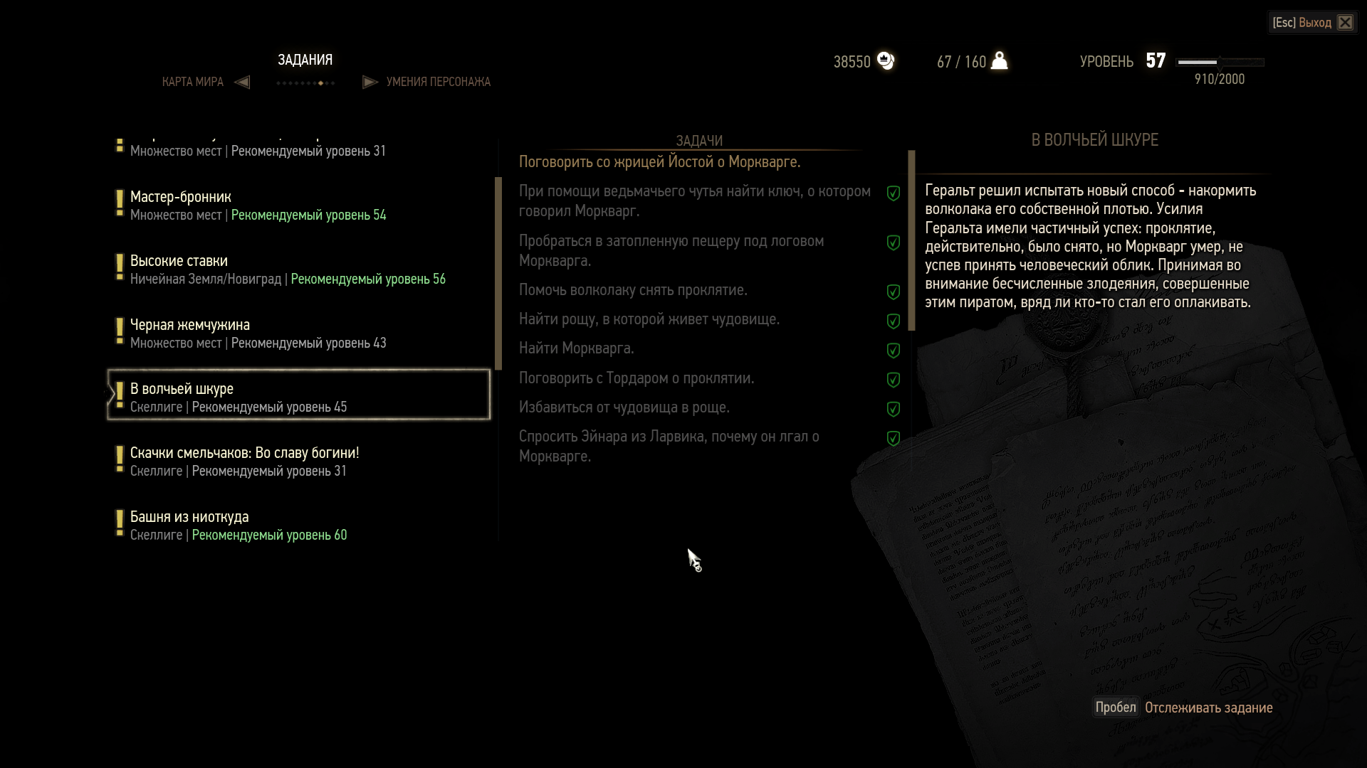 История с Моркваргом вообще глючная. В многочисленных перепрохождениях я выяснил, что "правильнее" ее проходить, вообще вначале не трогая Моркварга, когда в роще с Йенн. Нужно идти на берег и выполнять квест с тем мужиком, который его и заколдовал, и двигаться именно оттуда. Когда проходил в первый раз, я, естественно, кормил оборотня его же собственным мясом и тд, и тоже были потом какие то несрастухи в квестах.