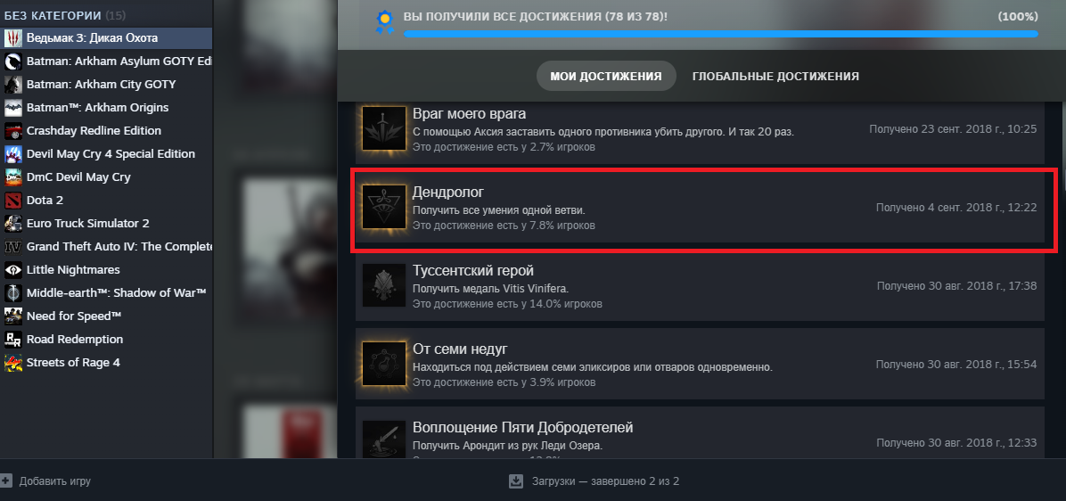 Достижение в стим "Дендролог" не засчитывается [v1.32]