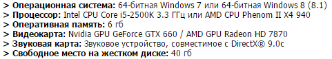 Прошел игру три раза на таком железе: i3-2100 3.10GHz, ОЗУ 4Гб, Nvidia GTX 550Ti 1024Gb 192bit. На низких, даже некоторые настройки прибавил. )))