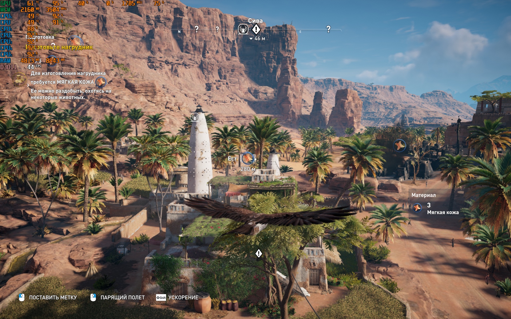 По поводу AC3, проходил его на старой видюхе еще, скачал AC Origins,поиграл полчаса на средних настройках, и вот небольшой отчет - при начале игре или при попадании в новую локацию(например залез в дыру в стене и там скрытая комната) начинает все лагать, но лаги буквально 2-5 секунд, после все нормально - т.е. играть вполне себе можно. Прикреплю скрин - на нем видно что загрузка ядер достигает до 99%, ГПУ тоже. А в ведьмаке нагрузка ядер 60-65%. Может это о чем то говорит.
