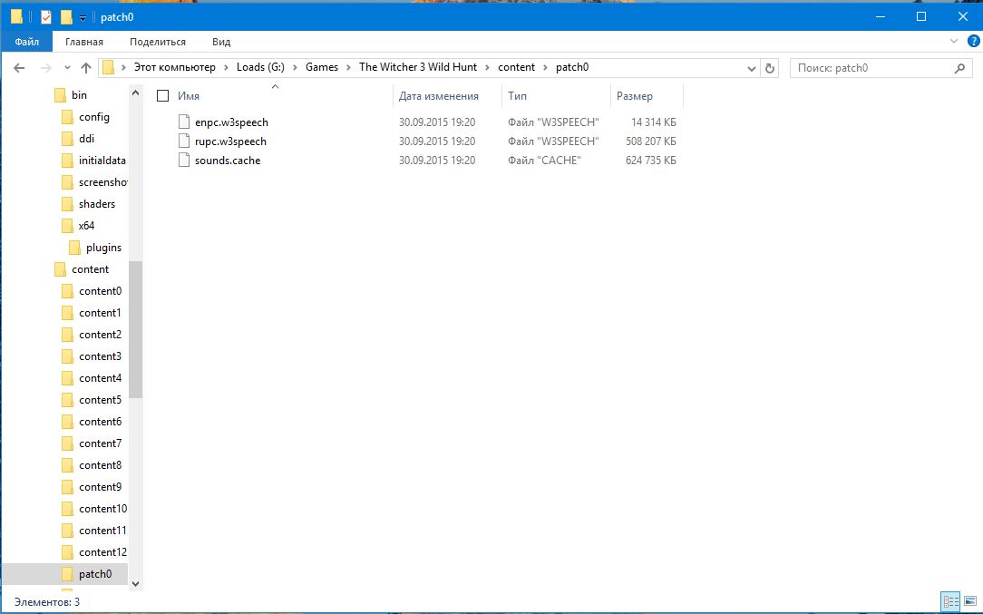папка patch0 должна выглядеть так как на скрине ниже, все удалить кроме enpc.w3speech, rupc.w3speech и sounds.cache