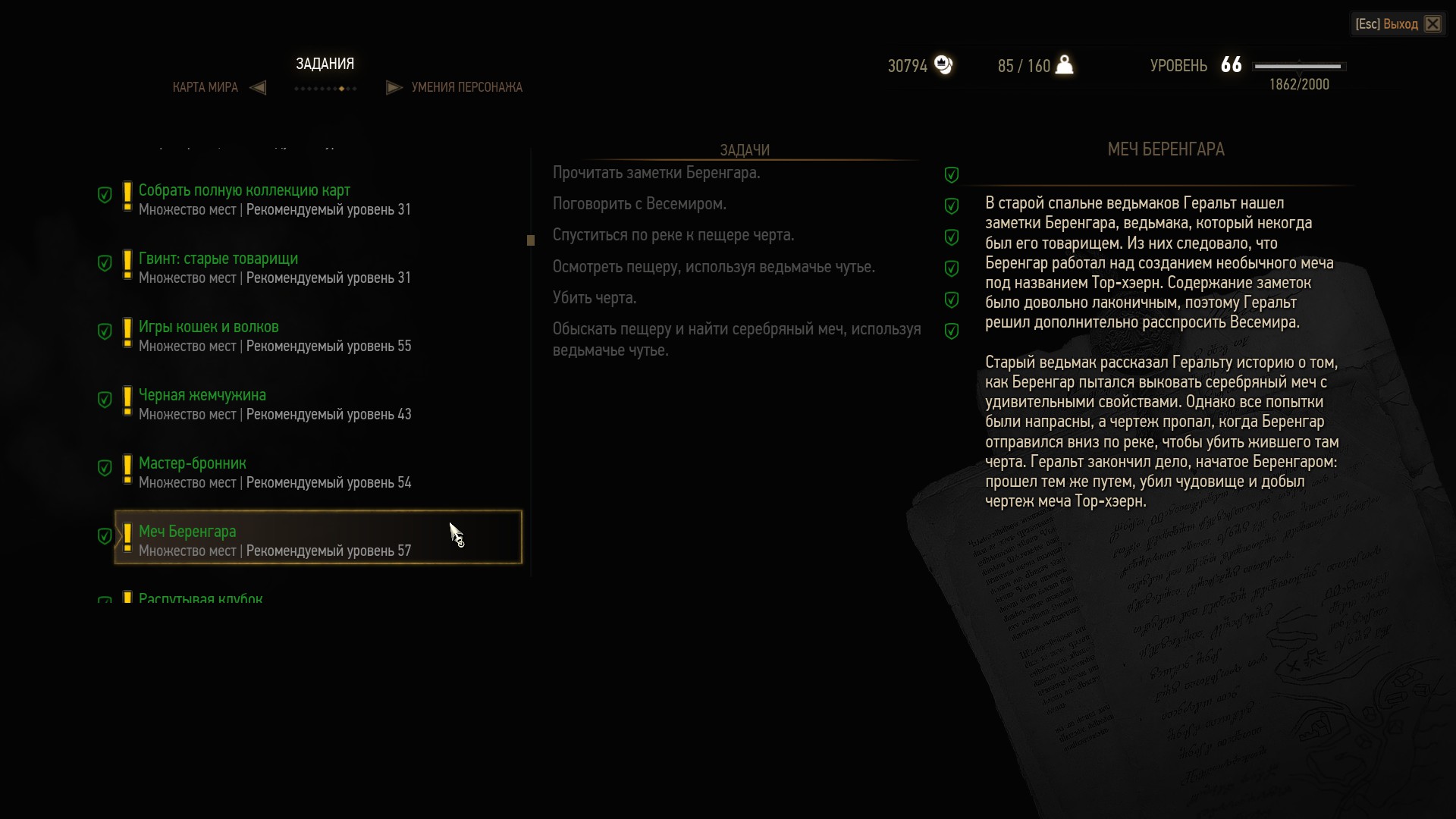 Меньше, чем хотелось бы... "Бастион", "Ведьмачья кузница", "Меч Беренгара", "Парниковый эффект" и "Соседская ссора"... Вот и все квесты... (=