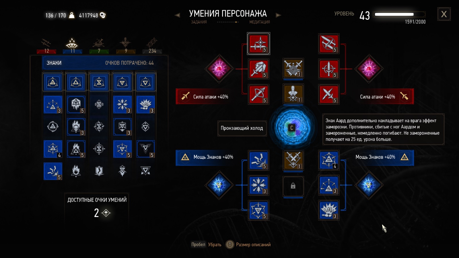 В доп ячейки мутаций можно поставить только знаковые, фехтовальные или алхимические умения. Умения из последней вкладки туда не вставить.