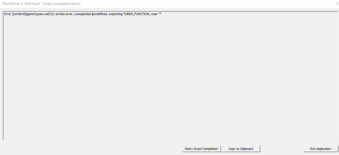 https://forums.playground.ru/witcher_3_wild_hunt/problema_s_kompilyatsiej_skriptov_v_modah-978480/ Была такая же ошибка, как и у автора данной темы. Проблема в том, что я сделал всё также, как было написано в ответе на тему. В итоге та ошибка исчезла и появилась новая.