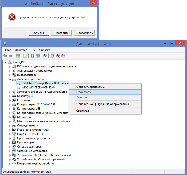 Кратко суть: При запуске Ведьмака 3 выскакивает ошибка "в устройстве нет диска. Вставьте диск в устройство Е". Это картридер, извините каким чёртом я вставлю в него диск?