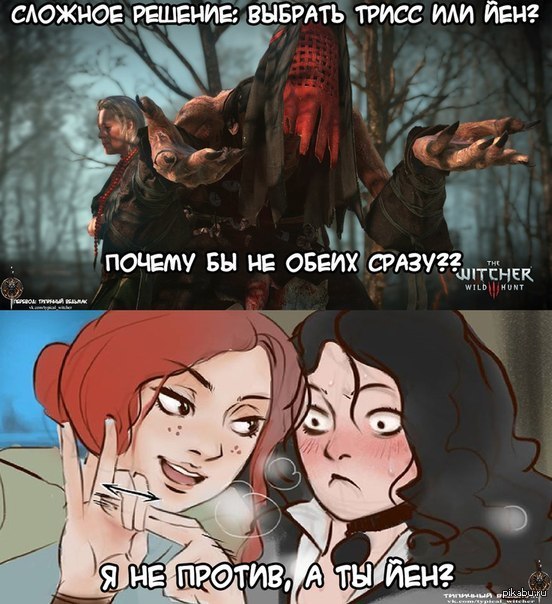 По кометариям выше видно что тут сидят фанатики. Это только в игре нужно выбирать между Йен и Трисс, ничего общего с реальной жизнью. В реальной жизни никто не запрещать иметь жену и нескольких любовниц. Реальная жизнь куда более сложная штука, а сюжет Ведьмака всего лишь написанный сценарий. Поэтому дорогие товарищи черезчур не увлекайтесь видеоиграми забудете как выглядит солнечный свет