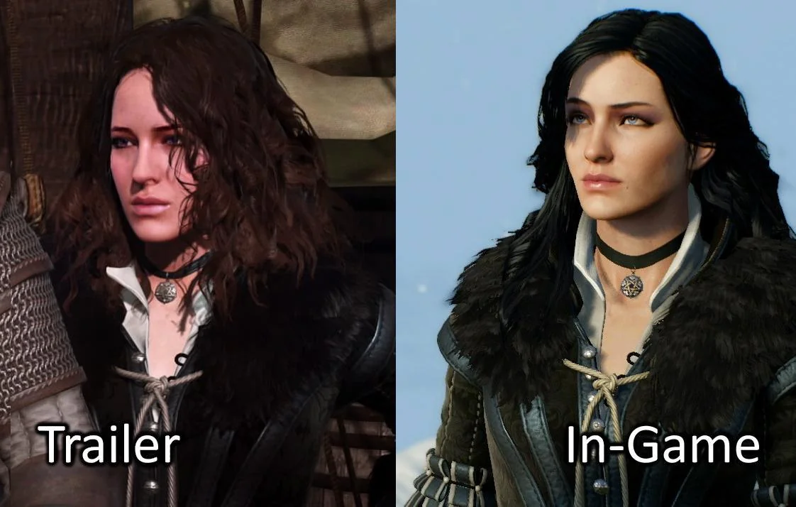 У Кодзимы внешность берется из реальных актеров, а у Ведьмака выдуманные, от того и различие CGI и игровой трейлер это разные модели, видимо повторить точь в точь им лень