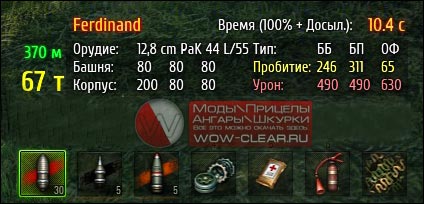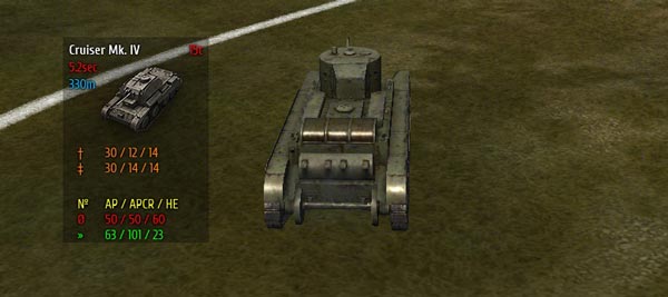 Многие танкисты просили нас выложить упрощенную панель где бы отображалось минимум информации, а именно время перезарядки танка и его обзор. Эта информация отображается только при наведении на вражеский танк. Расположена она в центре экрана под прицелом, что очень удобно.