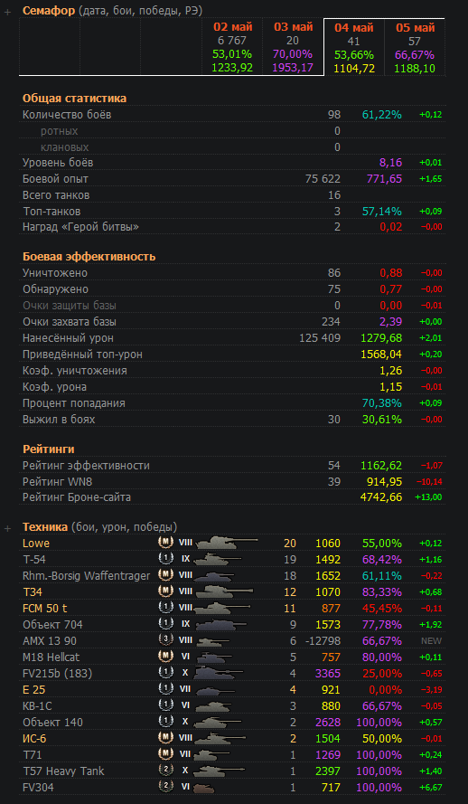 Еще одной особенностью программы является то, что вы сможете сохранять данные по игроку каждые сутки и следить за его развитием, узнавать на каких танках он чаще всего играет и так далее.