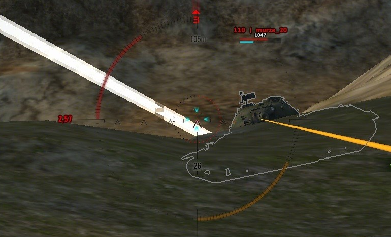• Лазер – красной полосой отображает на эеране направление пушки противника.