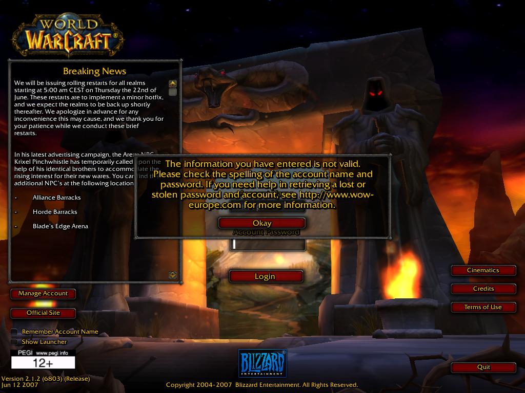 это было раз.Во вторых у тя если мне неизменяет зрение клиент ВОВ(простой) а на magealwow.game-server.cc нужен ТБС (на оффе канечно мона и со старым зайти но незнаю как там на эмулях)но скорей всего у тя рилм лист непрописан для magealwow.game-server.cc !ВОт так должно это выглядеть в файле рилмлист set realmlist magealwow.game-server.cc