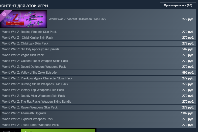 - World War Z: Pre-Apocalypse Character Skins Pack